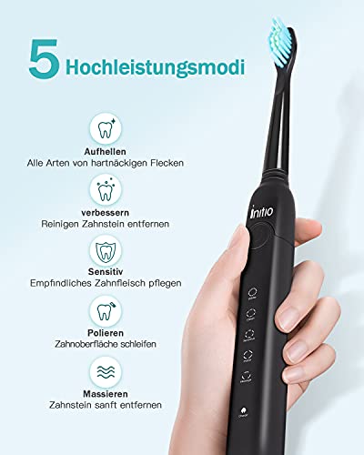 Questo spazzolino elettrico della Initio garantisce una pulizia del cavo orale corretta e completa, ideale anche per raggiungere le zone più nascoste e difficili da raggiungere della bocca. Questo spazzolino vanta ben 5 diverse modalità di spazzolamento, ovvero quella per lo schiarimento, quella per la pulizia, lucidatura, massaggio e infine quella destinata a chi invece ha i denti sensibili. Grazie a queste diverse modalità di uso è uno spazzolino ideale per soddisfare le vostre diverse esigenze di pulizia orale quotidiana.