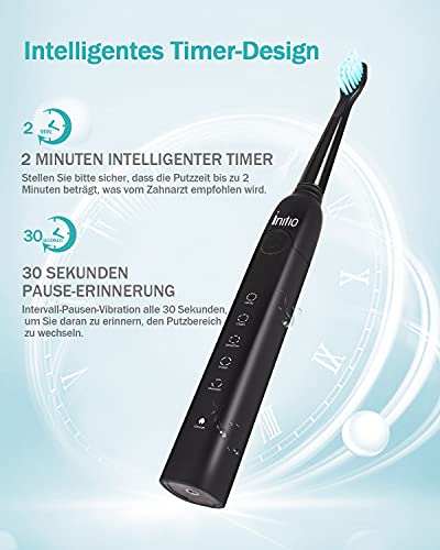 Lo spazzolino elettrico IT-959 da 40.000 VPM della Initio è uno spazzolino elettrico abbastanza interessante sia per quanto riguarda la sua velocità di spazzolamento che per quanto riguarda le sue modalità di utilizzo principali. Uno dei vantaggi principali di questo spazzolino riguarda il fatto di essere dotato di una tecnologia a ultrasuoni che permette di eseguire fino a 40.000 vibrazioni ad alta velocità al minuto. Questi spazzolini sono infatti in grado di sciogliere in modo molto efficace anche lo sporco più ostinato, compreso quello che si trova nelle parti della bocca spesso più complesse da raggiungere. È uno spazzolino elettrico che offre fino a 5 diverse modalità di utilizzo, tra cui quella di pulizia quotidiana, quella di massaggio delle gengive e anche quella ideale invece per chi ha i denti sensibili. In questo modo è possibile utilizzare lo spazzolino elettrico per andare incontro alle proprie esigenze di pulizia, anche quotidiane. Inoltre, è dotato inoltre di un timer intelligente di 2 minuti con spegnimento automatico e con pausa di intervallo ogni 30 secondi, così da passare alla pulizia del quadrante successivo. È perfetto da portare in viaggio con sé ed è uno spazzolino impermeabile, con classe di protezione IPX7. Il prezzo di questo spazzolino è uno dei suoi vantaggi principali, dato che presenta un costo particolarmente ridotto e accessibile rispetto alle sue principali funzioni di utilizzo.