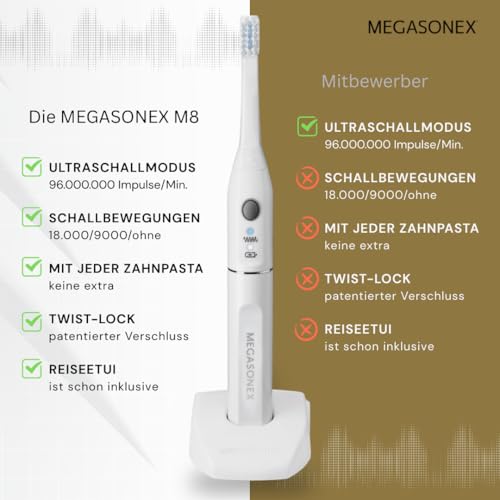 Lo spazzolino elettrico a ultrasuoni Megasonex M8 è un modello piuttosto efficace nella pulizia dei denti. Migliora l’aspetto del vostro sorriso in poche settimane di utilizzo. E’ capace di sbiancare in maniera graduale i denti, offrendo una sensazione di freschezza e di pulizia unica.