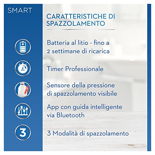 Lo spazzolino elettrico Smart 4 4000N è uno spazzolino professionale che permette di raggiungere dei buoni risultati di pulizia della bocca e del cavo orale. È dotato di un manico molto elegante e la sua forma lo rende molto accattivante e anche maneggevole e pratico da usare. Puoi anche usare l'App di Oral-B per scoprire e migliorare le tue abitudini di spazzolamento. Inoltre, puoi anche collegare il tuo spazzolino elettrico all'App per farti guidare con suggerimenti in tempo reale, il che ti permette quindi di spazzolare meglio i tuoi denti. In questo modo puoi anche riuscire a migliorare la tua routine di igiene orale. La testina rotonda di questo spazzolino Oral-B è qualitativamente notevole e ti consente di rimuovere fino al 100% di placca in più rispetto a quanto è in grado di fare invece uno spazzolino manuale. È uno spazzolino rispettoso anche delle gengive, che saranno così più sane. Il suo uso ti permette anche di eliminare buona parte delle macchie superficiali e avere così un sorriso più bianco sin dal primo giorno di utilizzo dello spazzolino elettrico. Il prezzo di questo spazzolino è proporzionato alle sue prestazioni, anche se rimane comunque abbastanza alto e quini poco accessibile a chi non può mettere a disposizione un budget elevato per l'acquisto di uno spazzolino da denti.