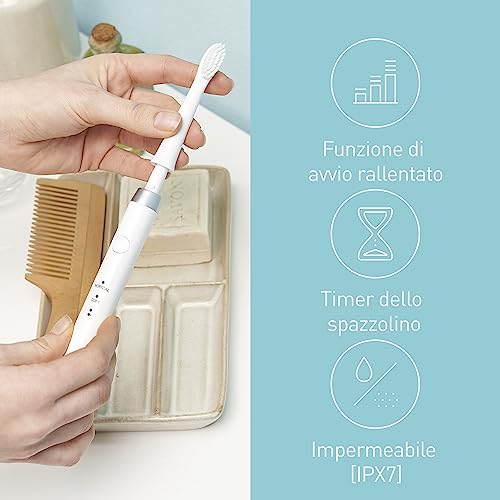 Con 44 euro di prezzo, lo spazzolino elettrico Panasonic EW-DM81-W503 si presenta come una soluzione a metà tra la fascia economica e quella media e per questo motivo le nostre aspettative erano relativamente basse. Ciò non di meno, siamo rimasti positivamente sorpresi dalla precisione e dall’efficacia del prodotto che, grazie alla tecnologia sonica e alle setole ultra sottili, può raggiungere anche gli spazi tra i denti, offrendo una pulizia profonda molto efficace. La struttura ed il design minimale sono ottimi perché rendono lo spazzolino compatto e facile da usare, perfetto sia per i viaggi che per l’uso domestico. Ottima la presenza di 2 modalità di spazzolamento: una normale e una particolarmente attenta a gengive e denti sensibili. Una nota di merito va fatta anche al timer e alla testina del prodotto che, nonostante il prezzo relativamente basso, risultano essere inserti degni della fascia media abbondante. L’unica nota negativa è l’autonomia, considerata insufficiente da alcuni utenti che la confrontano con i 10 - 20 giorni medi di autonomia della fascia alta. Generalmente consigliamo una spesa minima di 60 euro per l’acquisto di un buon spazzolino, ma il Panasonic che stiamo trattando oggi è un’eccezione molto gradita.