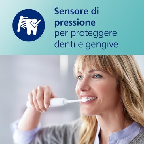 Lo spazzolino elettrico ProtectiveClean 4500 prodotto dalla Philips è un ottimo modello di spazzolino, pensato per utenti abbastanza esigenti e per chi desidera usare uno spazzolino elettrico ideale per sbiancare i denti. Grazie alla testina W2 Optimal White hai la possibilità di rimuovere tutte le macchie superficiali e avere così un sorriso più bianco dopo pochi utilizzi. È uno spazzolino con una testina dotata di setole centrali molto fitte e robuste, pensate appositamente per rimuovere tutte le macchie. Infatti, la testina è clinicamente testata per sbiancare i denti con una sola settimana di utilizzo. È uno spazzolino elettrico adatto per occuparti della rimozione della placca dai denti oppure se vuoi averli più bianchi, allora questo spazzolino elettrico è la soluzione di acquisto ideale per te. È dotato inoltre di due diverse modalità di utilizzo, una di pulizia profonda e una di sbiancamento dei denti. La modalità Clean offre una pulizia superiore e molto profonda, mentre la modalità White è ideale per eliminare le macchie superficiali dai denti ed evitare la formazione della placca e del tartaro sui denti. Con questo spazzolino della Philips puoi provare un'esperienza di pulizia sicura e precisa. Vanta una tecnologia sonica che risulta adatta anche a chi ad esempio usa con regolarità apparecchi ortodontici, capsule e corone. Il suo prezzo potrebbe sembrare elevato, ma per la qualità che offre è giusto.