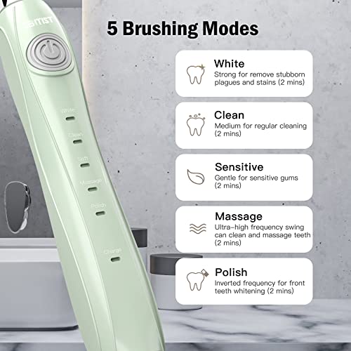 • ✔ 5 modalità di spazzolamento opzionali: WHITE, CLEAN, SOFT, MASSAGE, POLISH