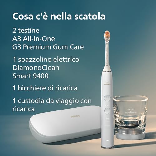 Philips Sonicare DiamondClean Smart 9400 spazzolino elettrico, spazzolino sonico con app, sensore di...