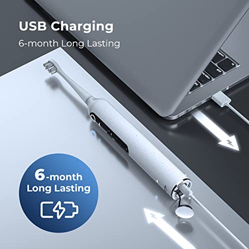 L’alimentazione dello spazzolino elettrico uSmile è affidata ad una batteria al litio ricaricabile tramite cavo USB Type C. La batteria impiega circa 4 ore per caricarsi completamente e offre fino a 190 giorni di autonomia. Sicuramente il dato dell’autonomia è da valutare al ribasso, in quanto le misurazioni sono sicuramente state effettuate con l’intensità e la potenza al minimo. Comunque un valore fuori scala di 80 – 90 giorni di autonomia è più che plausibile.